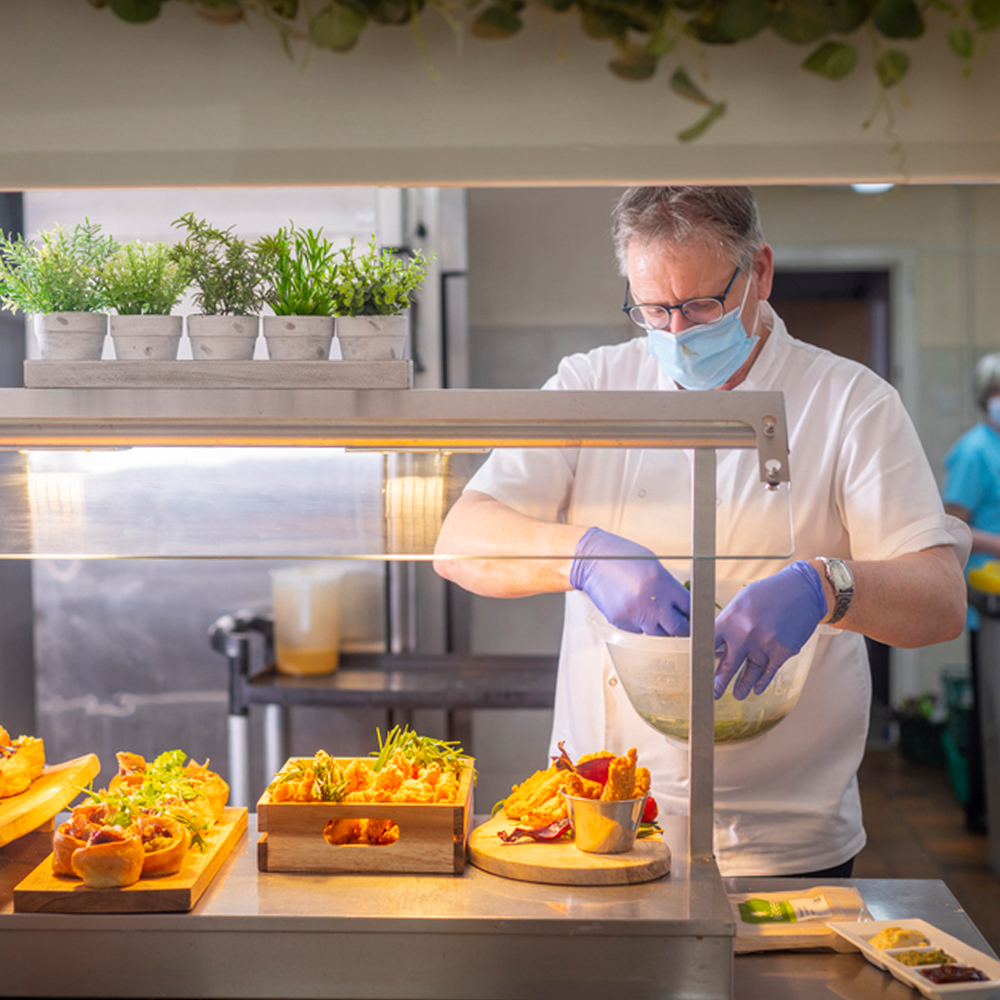 Head of Catering and Hospitality, Tony is supported by Cook Team Managers Denise and Helen. Together, they work closely with the catering crew members within each of our 12 care homes to provide a high-quality service to residents, making sure that it caters for their specific and individual needs. This could mean vegans and vegetarians, those with allergies, or residents who cannot eat independently.